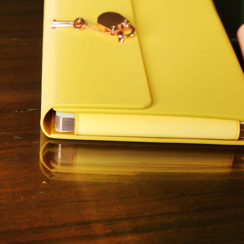 封面夜光PU,1.5mm灰板,三折鎖本,圓背圓角內芯:142*205mm,70g120張象牙紙1色印刷,有絲帶和篤頭布,圓角